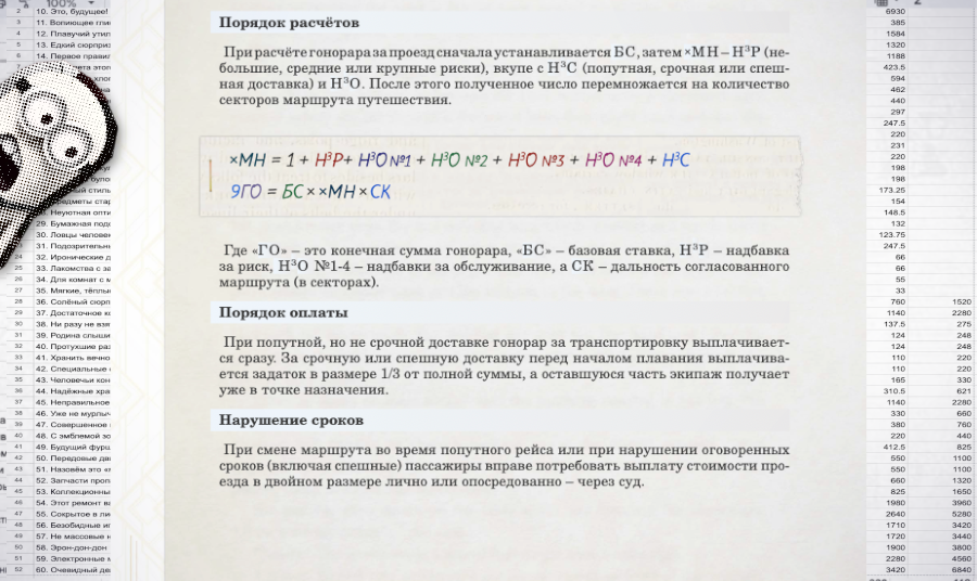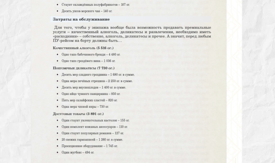 Ну, как прокладывается маршрут; когда и как бросаются кубики за риски; что именно значит “сбились с курса”; как решается, успели ли вы прийти в порт до пепловицы; что происходит с грузом, командой, психикой. Куча полезных штук, без которых можно обойтись и большинство и обходится – ну потому что фиг их удержишь в голове. А тут – буковки. Буковки – это наши маленькие черненькие друзья, да,