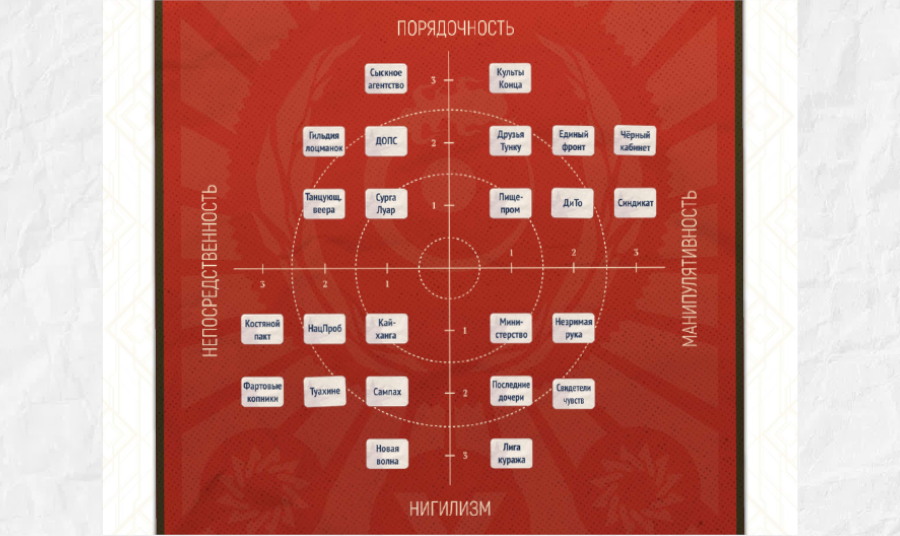 Первый бросающийся в глаза шедевр — “сбоящий социальный компас”. Уже само название: звучит как шутка, но на практике – очень аккуратный инструмент. Да, речь о метрике психосоциального состояния, но лучше, чем просто “стресс” или “сошёл с ума”. Это механика про то, как у персонажа медленно, как стрелка под влиянием магнитной бури, меняется система координат и о том куда это его приводит.